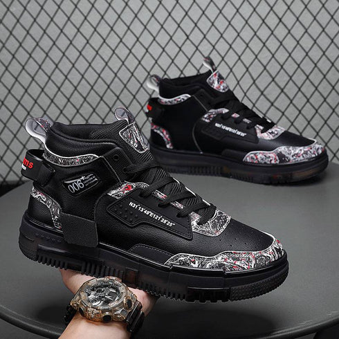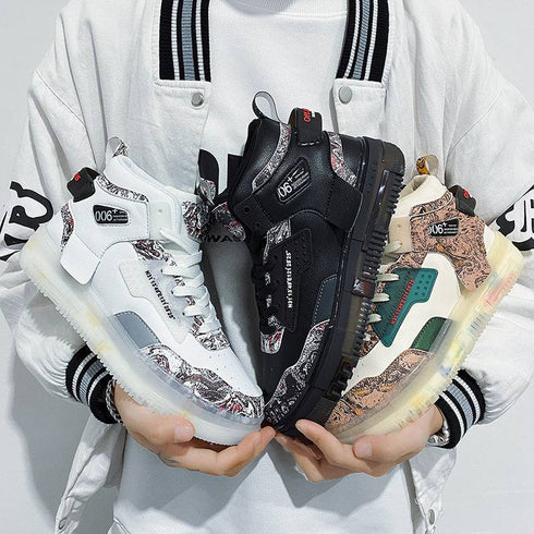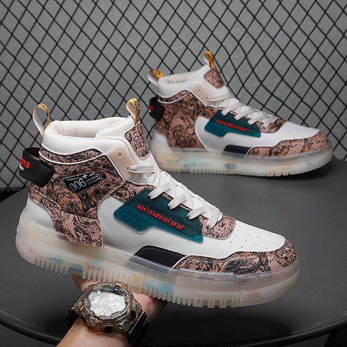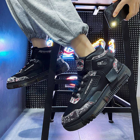 - Men's Shoes Popcorn Soft Sole Comfortable High Top Flat Small White