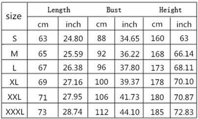 1. Asian sizes are 1 to 2 sizes smaller than European and American people. Choose the larger size if your size between two sizes. Please allow 2-3cm differences due to manual measurement. 2. Please check the size chart carefully before you buy the item, if you don't know how to choose size, please contact our customer service. 3.As you know, the different computers display colors differently, the color of the actual item may vary slightly from the following images.